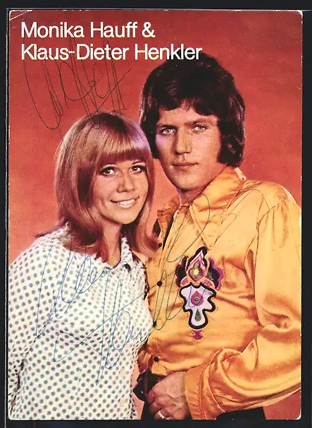 AK Musiker-Duo Hauff & Henkler, er im markanten gelben Hemd, mit Autograph