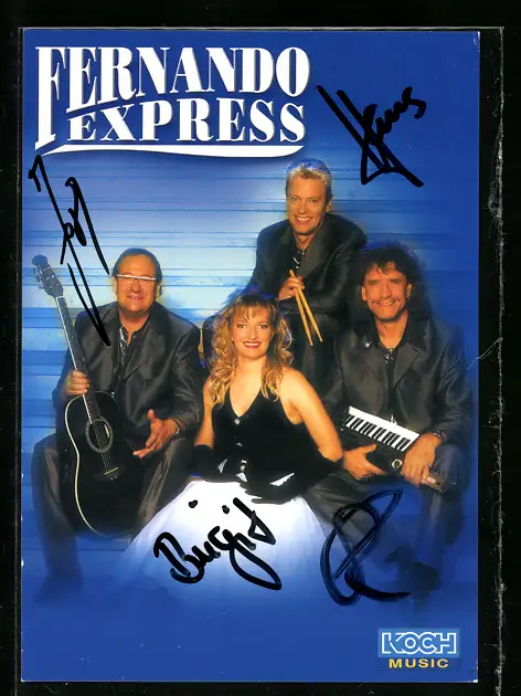 AK Musiker Fernando Express mit Instrumenten, Autograph