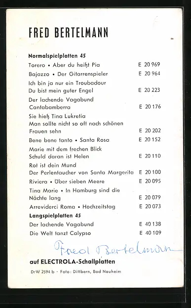 AK Musiker Fred Bertelmann in die Kamera schauend, Autograph