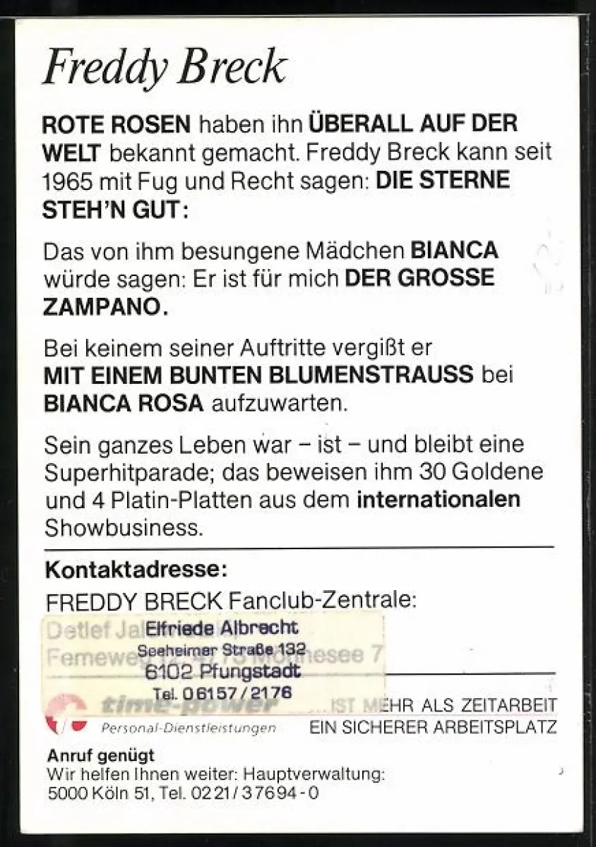 AK Musiker Freddy Breck in gestreiftem Anzug, Autograph
