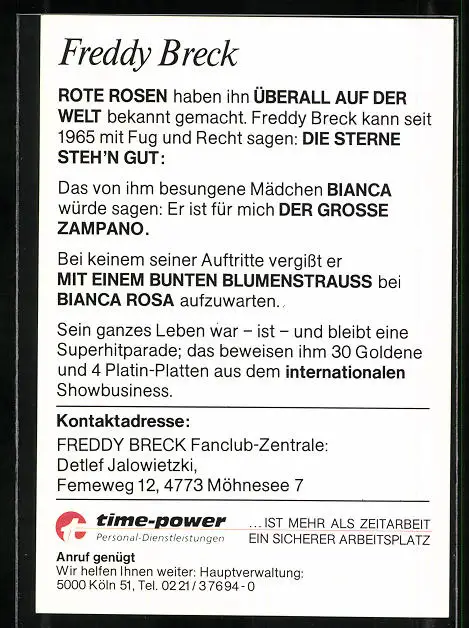 AK Musiker Freddy Breck mit aufgestütztem Kopf, Autograph
