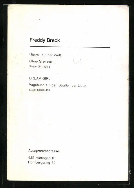 AK Musiker Freddy Breck mit jungenhaftem Charme, Autograph