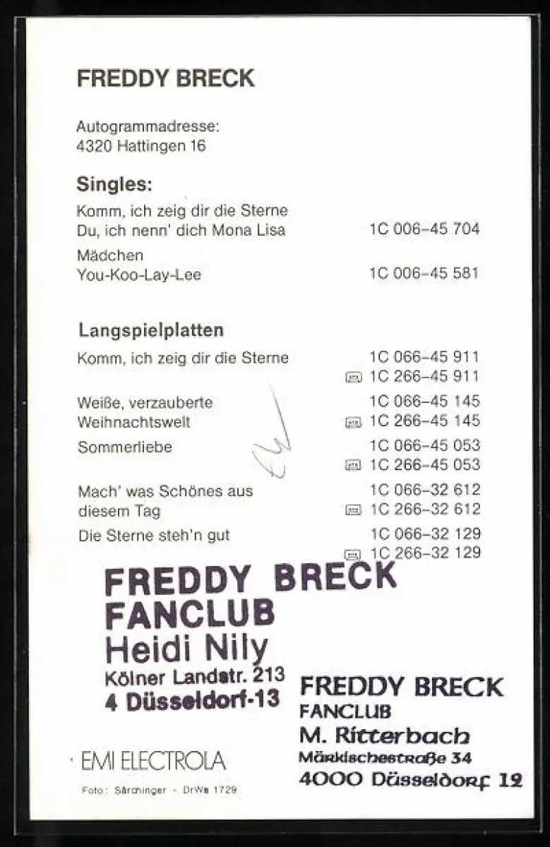 AK Musiker Freddy Breck mit lächelndem Gesicht, Autograph