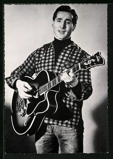 AK Musiker Freddy Quinn im karierten Hemd mit Gitarre