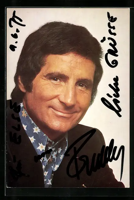 AK Musiker Freddy Quinn mit lächelndem Gesicht, Autograph
