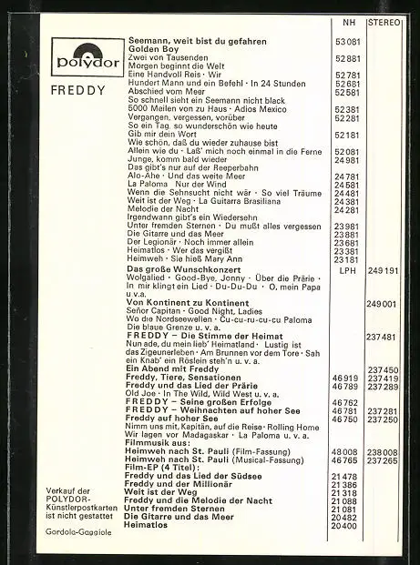 AK Musiker Freddy mit zuversichtlichem Blick, Autograph