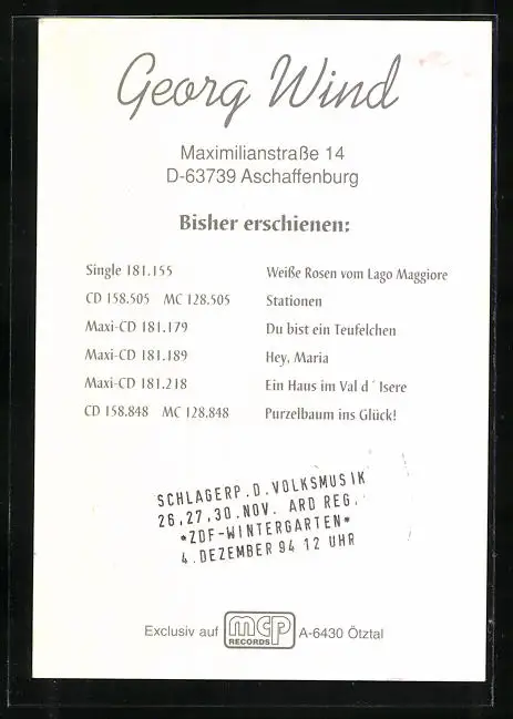 AK Musiker Georg Wind mit strahlendem Lächeln, Autograph