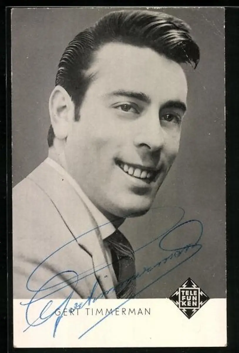 AK Musiker Gert Timmermann, Portrait im Anzug, Telefunken, Autograph