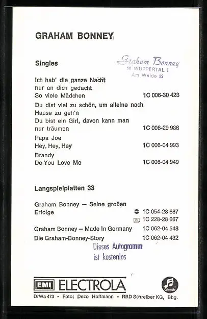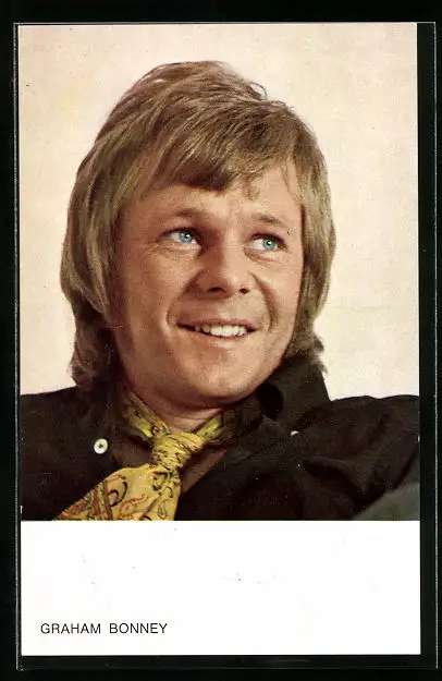 AK Musiker Graham Bonney blickt lächelnd in die Ferne, Autograph