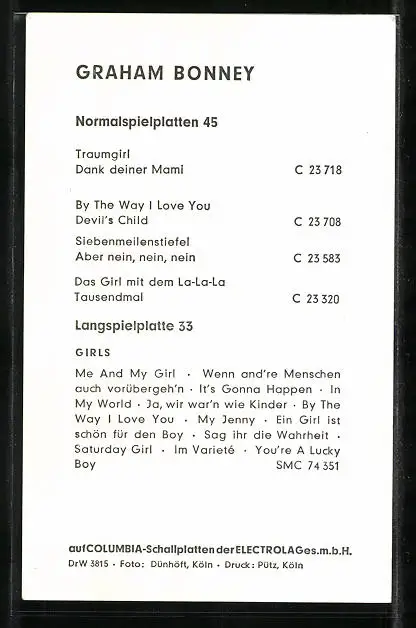 AK Musiker Graham Bonney blickt nachdenklich in die Ferne, Autograph
