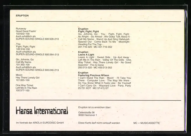 AK Musiker-Gruppe Eruption mit tollen Haarschmuck