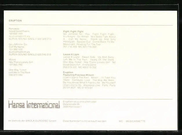 AK Musiker-Gruppe Eruption mit tollen Haarschmuck