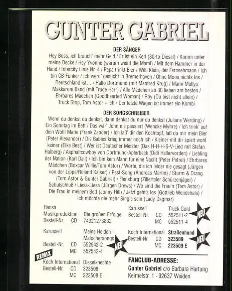 AK Musiker Gunter Gabriel mit Gitarre, original Autograph