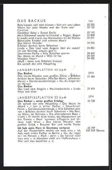 AK Musiker Gus Backus mit aufmerksamem Blick, mit Autograph