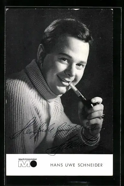 AK Musiker Hans Uwe Schneider mit Pfeife, Autograph
