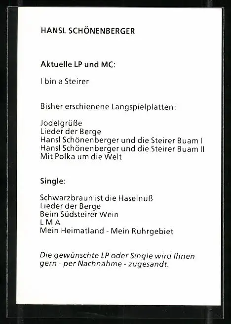 AK Musiker Hansi Schönenberger in Tracht, original Autograph
