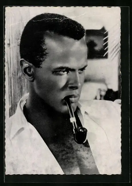AK Musiker Harry Belafonte mit Pfeife im Mund