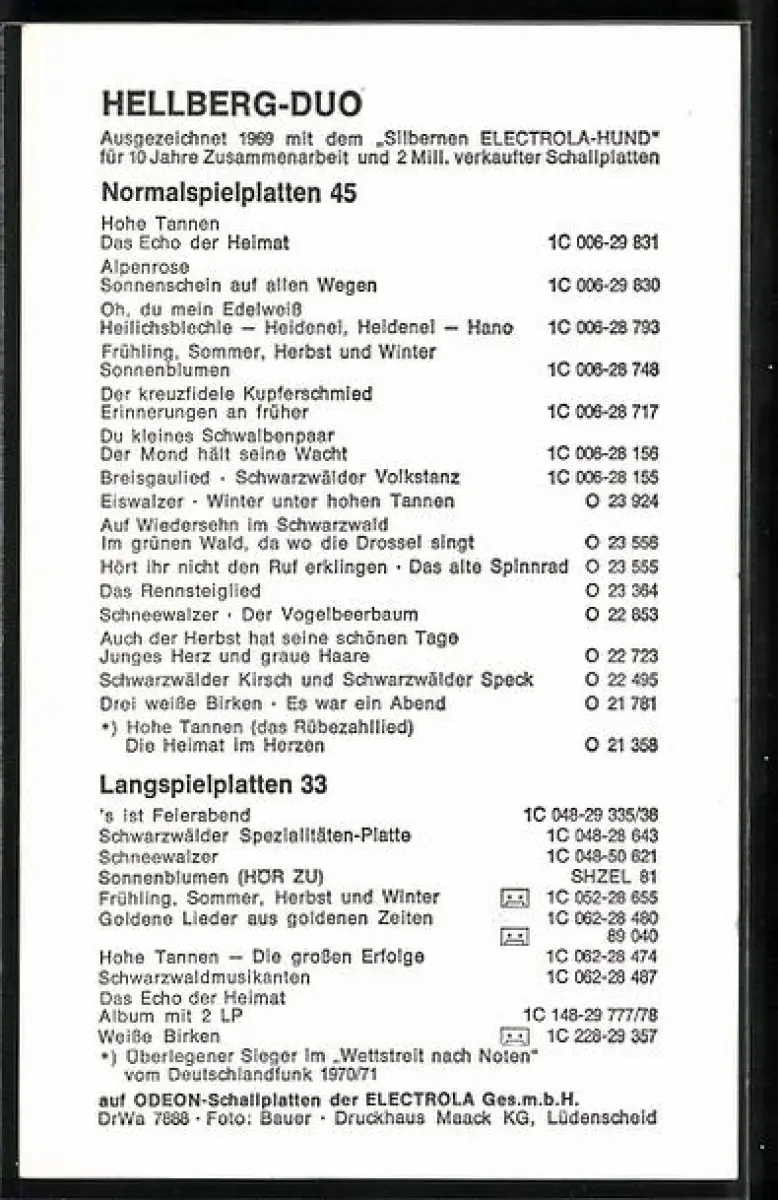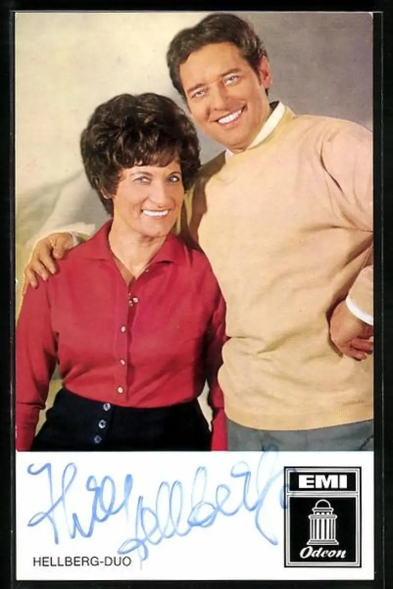 AK Musiker Hellberg-Duo lächlend im Porträt, Autograph