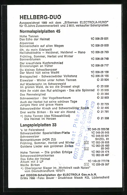AK Musiker Hellberg-Duo mit Autograph