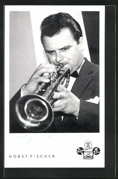 AK Musiker Horst Fischer Trompete spielend, Autograph