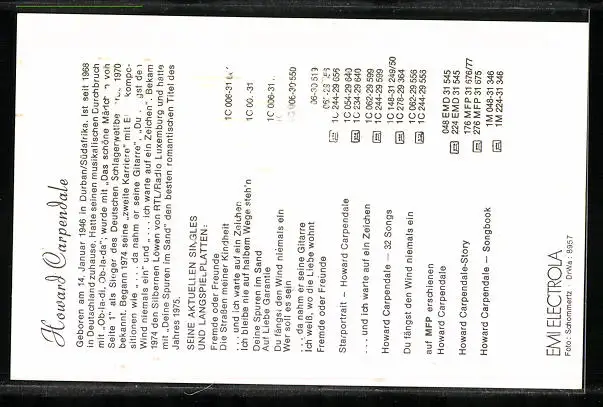 AK Musiker Howard Carpendale mit offenem Kragen und Halstuch, Autograph