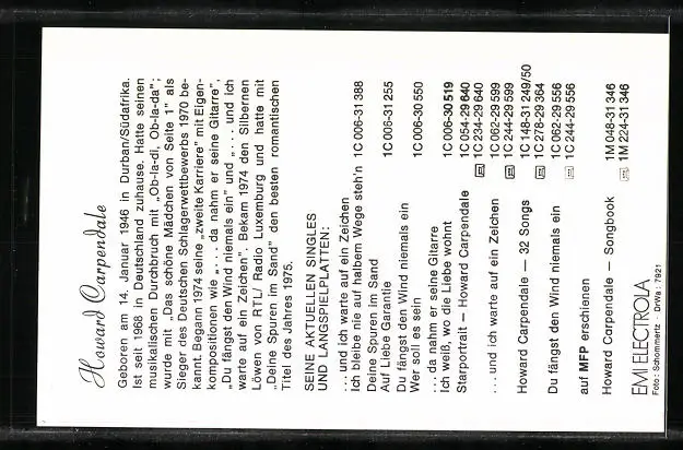 AK Musiker Howard Carpendale mit spitzem Kragen und Halstuch, Autograph