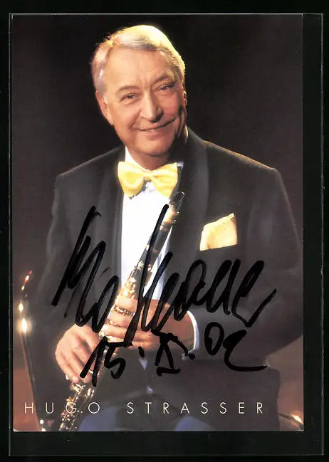 AK Musiker Hugo Strasser mit Oboe, Autograph