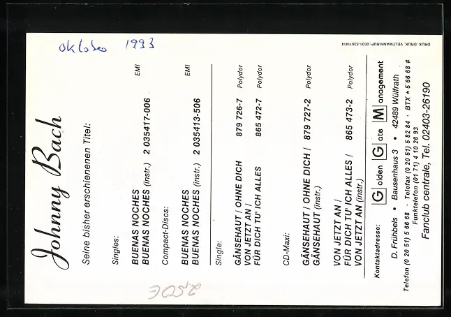 AK Musiker Johnny Bach in Lederjacke, Autograph