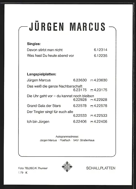 AK Musiker Jürgen Marcus im Trenchcoat mit original Autograph