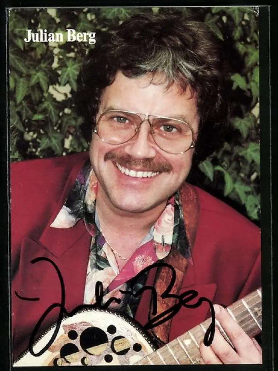 AK Musiker Julian Berg mit Gitarre, Autograph