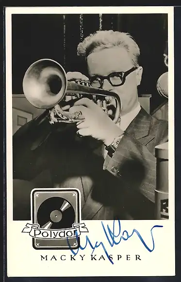 AK Musiker Macky Kasper beim Trompete-Spielen, mit Autograph