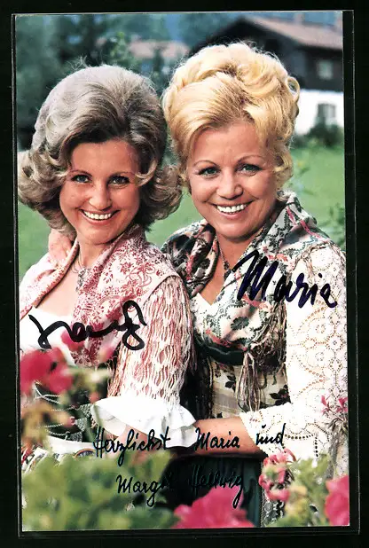 AK Musiker Maria und Margot Hellwig lächelnd im Freien