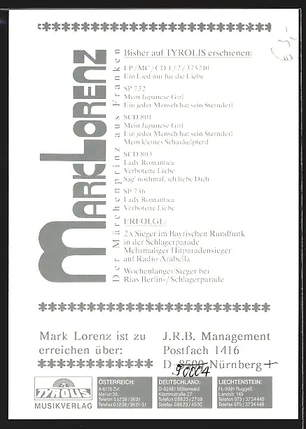 AK Musiker Mark Lorenz, mit original Autograph