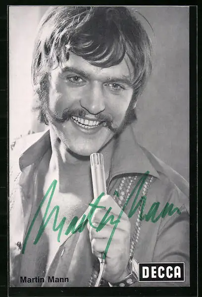 AK Musiker Martin Mann mit Mikrophon, Autogramm