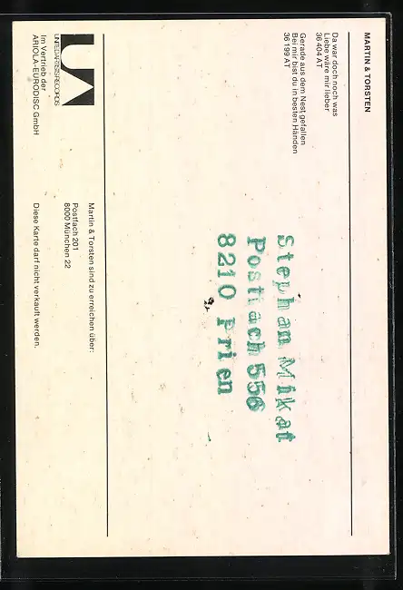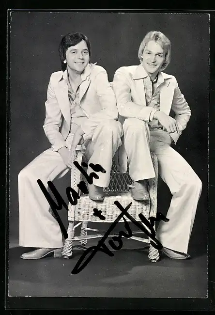 AK Musiker Martin und Torsten in weissen Anzügen, Autogramm