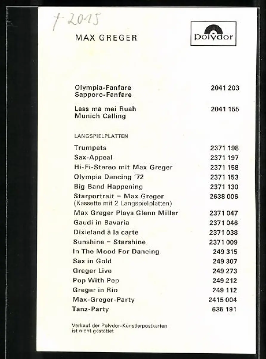 AK Musiker Max Greger spielt Saxophon, Autograph