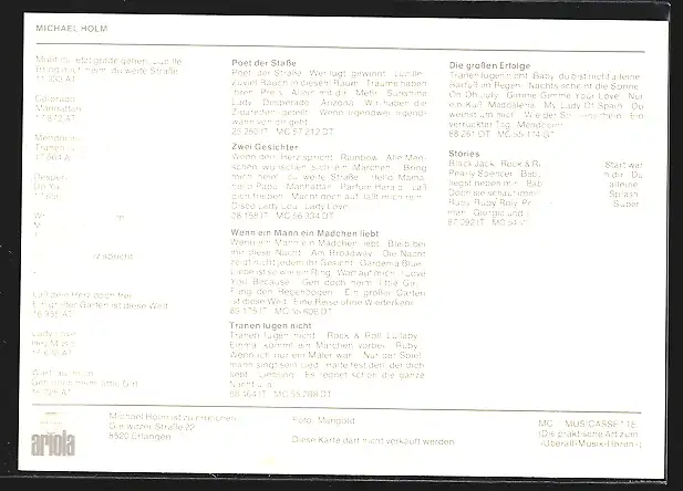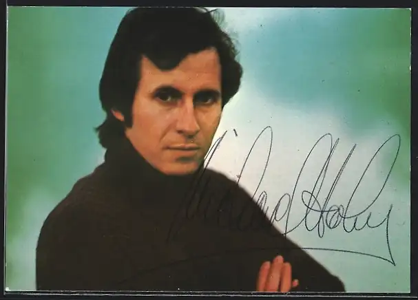AK Musiker Michael Holm in Kamera blickend, mit Autograph
