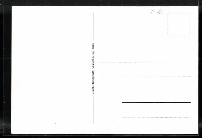 Personenbezogene Daten auf der Rückseite der Karte wurden durch blauen Textmarker unkenntlich gemacht. Die blauen Stellen sind auf die Vorderseite durchgeweicht und wirken sich negativ auf das Postkartenfoto aus