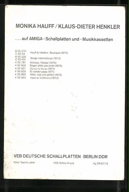 AK Musiker Monika Hauff und Klaus-Dieter Henkler, original Autograph