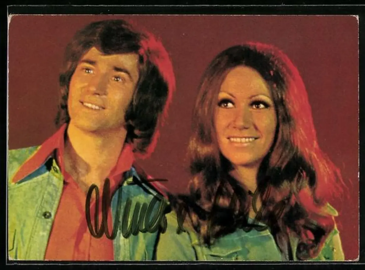 AK Musiker Nina & Mike lächelnd im Porträt, Autograph