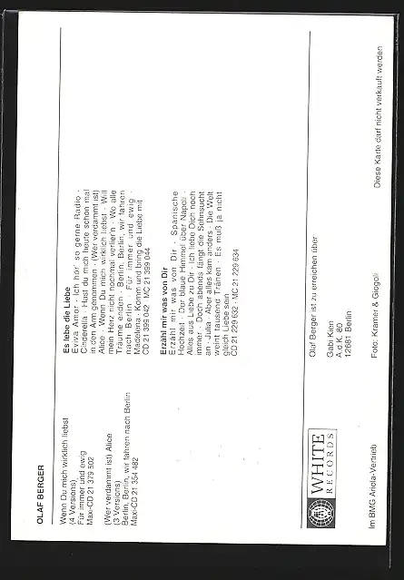 AK Musiker Olaf Berger in rotem Jackett mit original Autograph