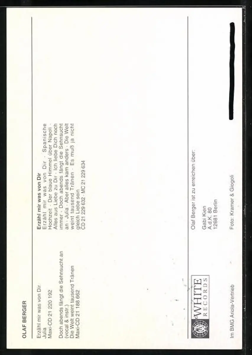 AK Musiker Olaf Berger in weissem Anzug, Autograph