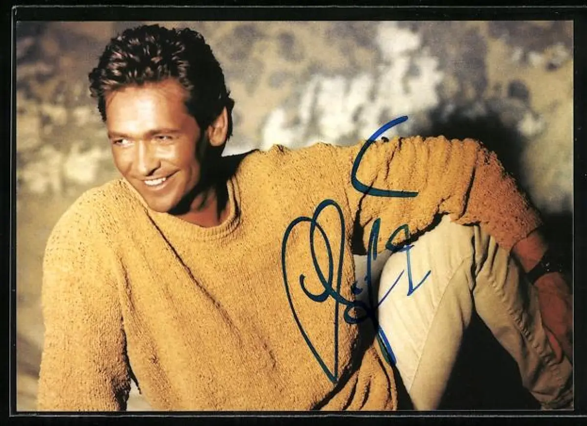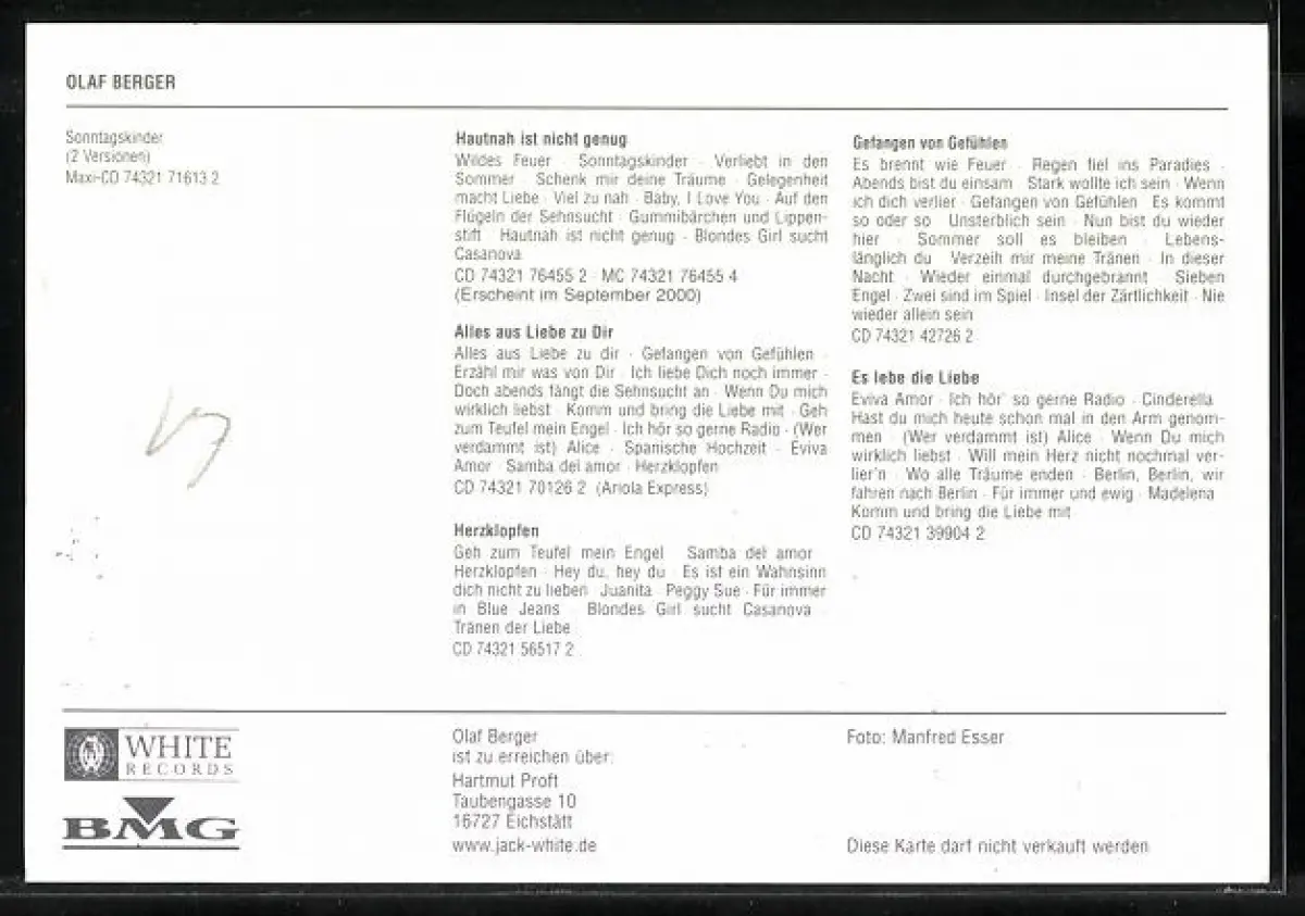 AK Musiker Olaf Berger lächelnd im Porträt, Autograph
