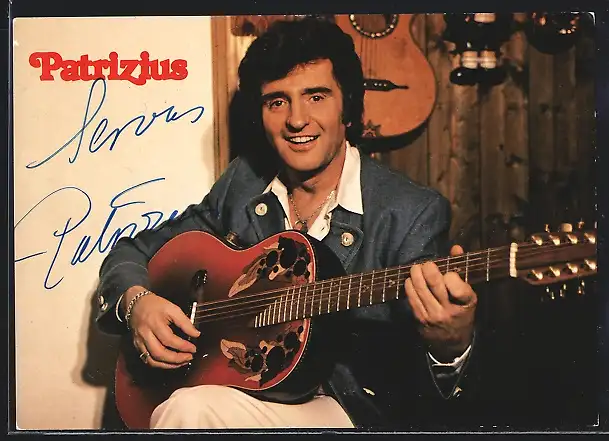 AK Musiker Patrizio mit einer Gitarre, mit Autograph