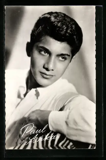 AK Musiker Paul Anka mit Hemd lehnt über einer Stuhllehne