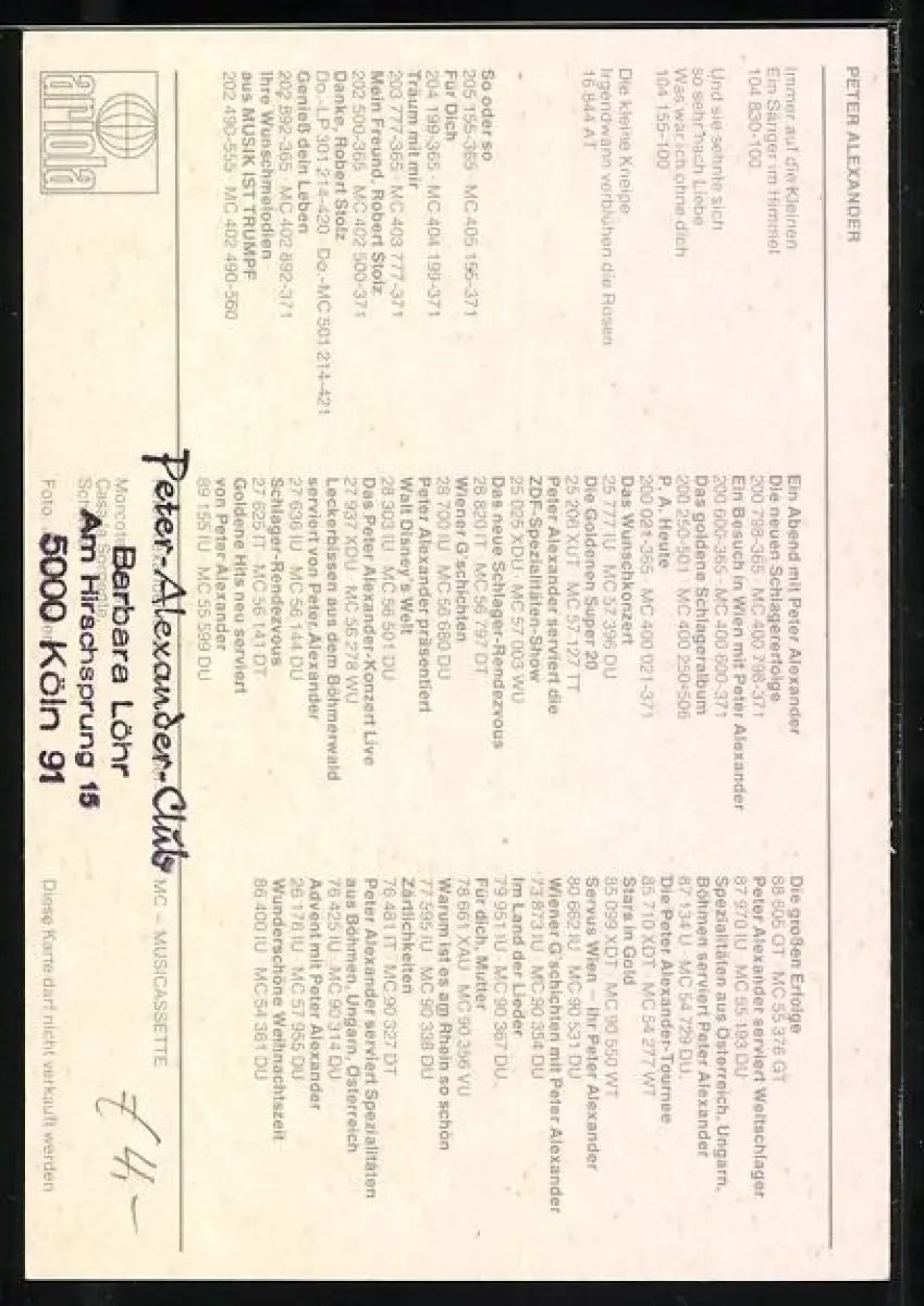 AK Musiker Peter Alexander im Porträt mit Autograph