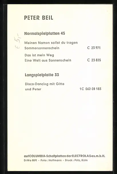 AK Musiker Peter Beil im weissen Hemd, Autograph