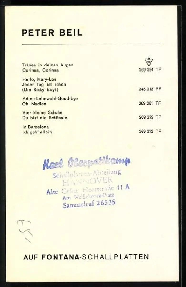 AK Musiker Peter Beil lächelnd, Widmung und Autograph