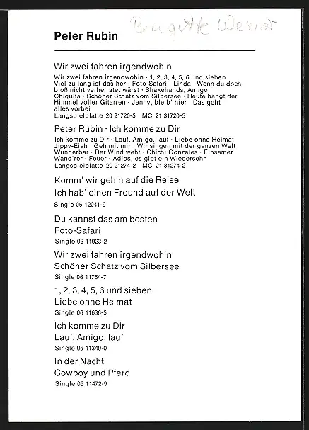 AK Musiker Peter Rubin lächelnd in Kamera blickend, Autograph