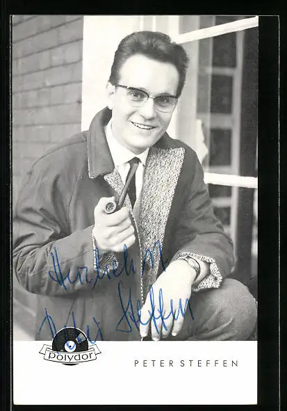 AK Musiker Peter Steffen mit Tabakspfeife, Autograph